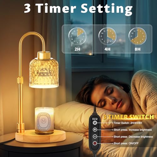 3-Timer Settings 2H/4H/8H: Candle warmer light features a 3-gear timer with preset durations of 2, 4, and 8 hours, heater enables control of the heating time, allowing you to fully immerse in the fragrance with complete peace of mind