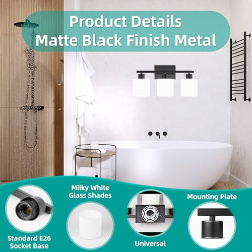 Modern Decor: The vanity light is designed with modern matte black lamp holders and elegant milky white glass shades to create a modish look, and add classic aesthetics to your home