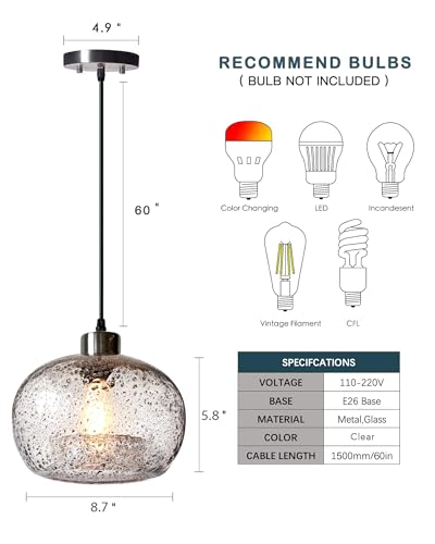 ?Glass studio & Pendant lighting?Original Design,Clear Marble Technic, Unique Globe Shape for Kitchen Island, Each Item is Hand Blown Art Glass, Bright Your Home And Kitchen.