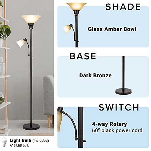 LIGHT BULB REQUIRED: This floor lamp uses one A19/E26 or LED equivalent bulb (top shade) and one 40-watt or LED equivalent bulb (reading shade); bulbs not included