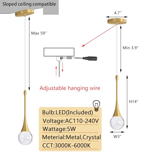 Glam Sparkling Hanging Light - All assembly is complete, it is easy to install on Flat / Sloped / Vault ceilings etc. Bubble crystal ball illuminate enchanting light for the bedroom, kitchen, island, dining room, hallway, or any other indoor rooms
