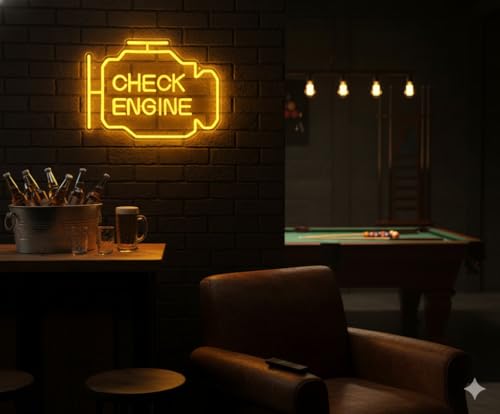 Special Design?The check engine neon sign easily make your garage the most epic entertainment center with this car accessories shaped neon sign that instantly transforms your space and make you happy. It makes the perfect addition to your game room decor and brings a cool touch of color that will make your buddies envious