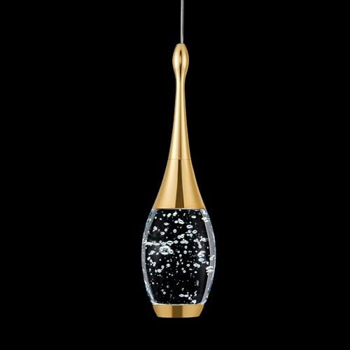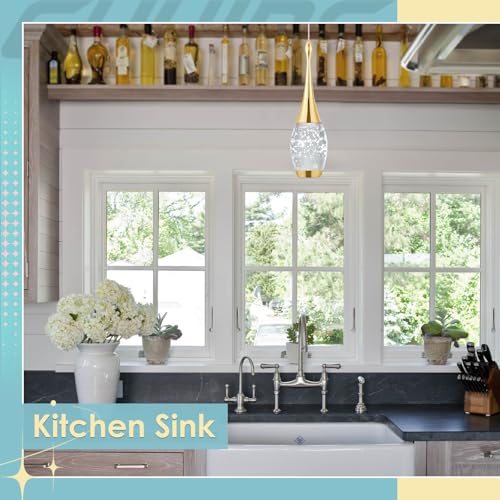 Teardrop Crystal Pendant Light: The brass pendant light is made of clear bubble crystal with the unique raindrop shape, adding a stylish and luxurious atmosphere to the modern home, perfect for kitchen sink, living room, restaurant and hallway