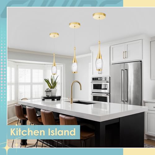 Kitchen Island LED Island Light: 6000k LED light source provides cool white lighting effect, create a bright and comfortable home atmosphere; our gold teardrop pendant light work well with 6W, low consumption performance brings you a more durable use experience
