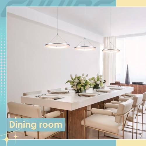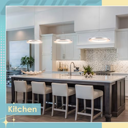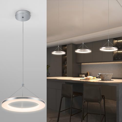 PREMIUM MATERIALS: This round nickel pendant light features a premium acrylic ring that seamlessly integrates the LED light source with sleek silver aluminum and a polished chrome finish. Emitting a soft, even glow with a clean, defined outline