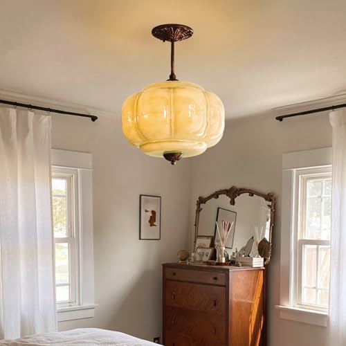 The antique brass and green glass pendant light combines vintage and modern aesthetics, making it a statement piece for various settings. Ideal for living rooms, dining areas, kitchens, entryways, or even commercial spaces such as cafes and boutiques.
