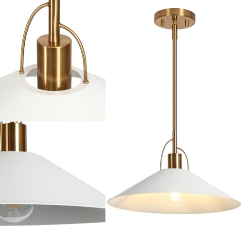 Versatile Installation, Varied Scenes: Effortlessly install the gold and white pendant lights as a singular statement or in a pair for symmetrical sophistication. The minimalist design complements various settings, whether over a cozy breakfast nook, kitchen island, dining room, bedside, or a grandiose entryway.