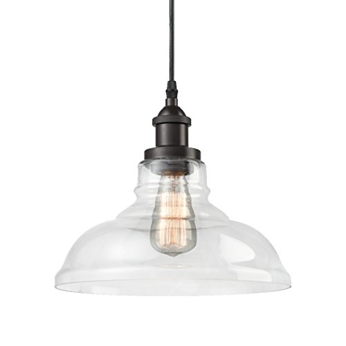 Industrial and Retro Style: clear handblown glass dome shade with oil rubbed bronze finish pendant light creates an industrial yet vintage accent; suitable for the kitchen island, coffee shop, bar or dining room and office