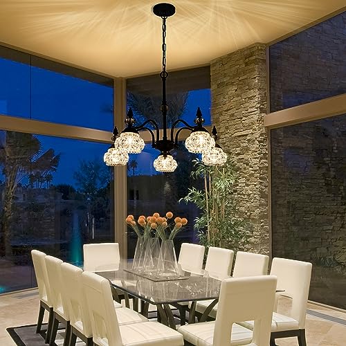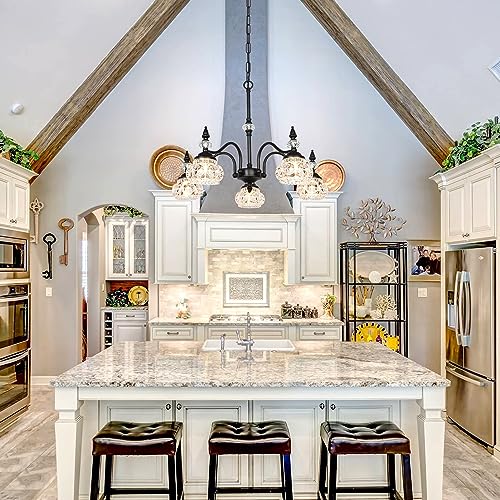 Design - Vintage chandelier is carefully crafted by a skilled craftsman. The 5 shades are made of crystal glass, not cheap plastic! Once installed, the black chandelier is like jewel on the ceiling, sparkling and dazzling, every guest who enters your home will praise it.