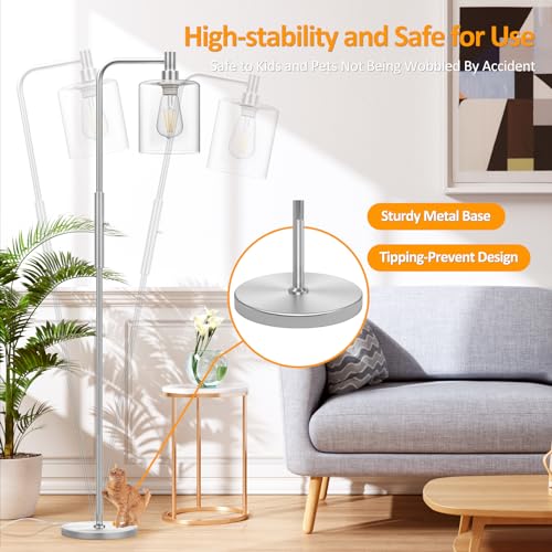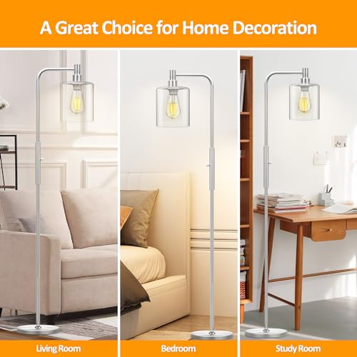 Elegant Design with Dimmable Pole Lamp: These tall lamps are with a clear glass shade, anti-rust metal lamp pole is matched with a glass lampshade to make the tall floor lamp look stylish and delicate. The soft warm light creates a comfortable atmosphere. Compatible with a variety of decorative styles such as mid-century, modern, classic, and artistic decoration. Bring different lighting experiences to your different styles of space.