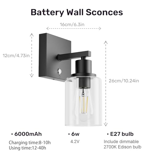 ?????Wide Application?The battery wall sconce is made of metal in a durable matte black finish that is waterproof, rust and corrosion resistant. These industrial wall sconces do not require hardwiring for installation, you can install them wherever you want where you need to light up, especially during power outages. Direction up and down can be mounted, suitable for porches, hallways, bedrooms, staircases, living rooms as well as cafes and restaurants.
