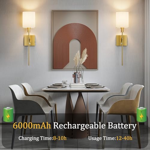 ?6000mAh Rechargeable Battery?This wireless wall light built-in 6000mAh battery ensures up to 12 hours of maximum brightness or 40 hours at minimum brightness.The charging port on the left side of the wall sconce can be charged directly via Type-C. If there is no outlet nearby, the wall sconce can be easily removed for charging.