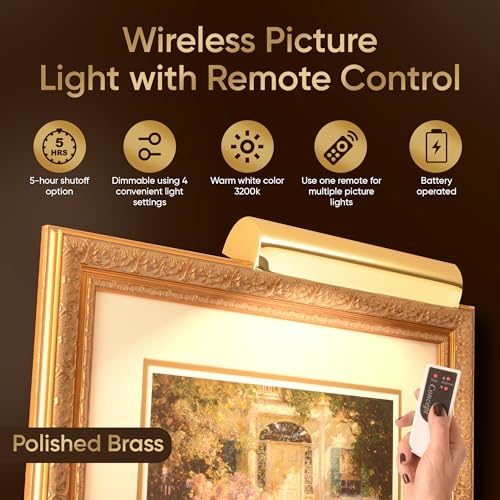?[Wireless Picture Light with Remote] - Battery Operated & dimmable attaches to wall, back of picture frame, or bookshelf. Attractive Modern, Vintage and Traditional Design. Premium Quality. Made of metal with a quality, long-lasting finish. Head tilts to direct light to exactly where you want it.