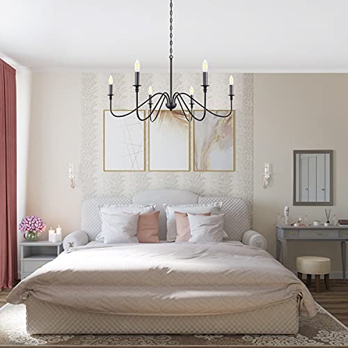 The black chandelier is easy to install,the candle chandelier with adjustable chain.you can adjust the length of the chain according to the height you want with detailed installation instructions. For sloped ceiling,flat ceiling or vaulted ceiling can be very perfect.