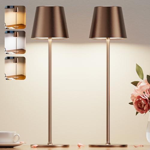 Cordless Table Lamp Rechargeable Brown - KK 2 Pack 5000mAH Battery Operated Lamp for Counter, 3 Color Stepless Dimming Wireless Lamp for Dining Table, Kitchen Counter, Outdoor Patio, Touch Control