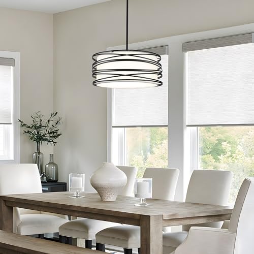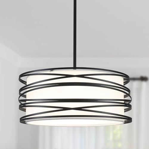 ?Unique Design & Wide Application?Elegant black and white double-layer drum chandelier is perfect to match the modern or retro home style. We recommend you purchasing one to place in living room, entryway, hallway, foyer. Two or three for areas such as kitchen islands or dining room.Adding more interest to your home!