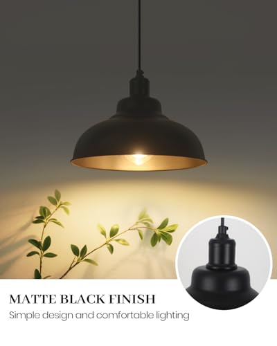 ?Minimalist Design?The farmhouse pendant lights features a classic matte black dome silhouette, creating an impressive, stylish look that easily blends into a variety of interior styles. It’s ideal for dinning room, kitchen island, sink, farmhouse, barn, laundry room, cafe, bars, living room to show contemporary industrial style.
