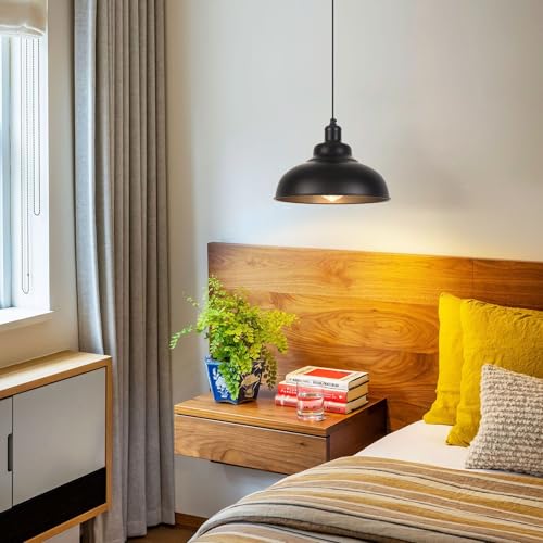 ?Excellent Quality?The 11.4in black pendant light fixtures are made of heavy metal, which is sturdy, durable and rust-resistant. The carefully designed weight of the vintage pendant light ensures that the wire remains perfectly straight when hung. In addition, We provide a 1-year warranty for every customer.