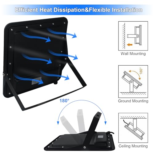 Easy to Install and Use: Our flood lights outdoor with a 1.5 m long power cable and with a plug, you could installed it on the ground, wall or ceiling. 180° adjustable bracket to adjust to the position you want to illuminate.