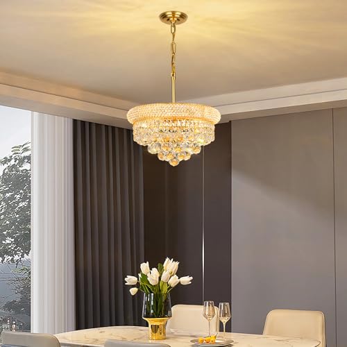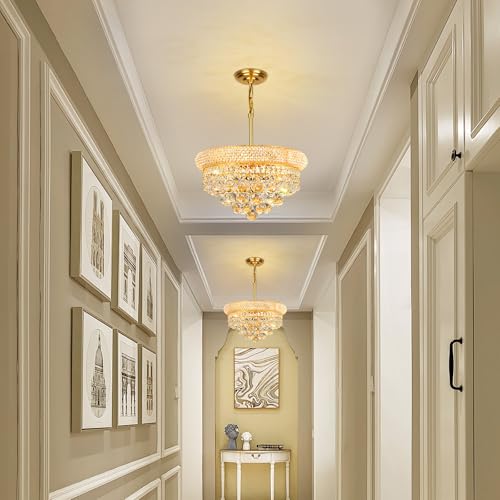 APPLICABLE SCENE?This gold crystal chandeliers combines luxury and French Empire style, the recommended use area is 100-150 ft2, it can be used as a dining room light fixtures over table?also can be used in the bedroom?kitchen ?Entryway?Foyer?Hallway