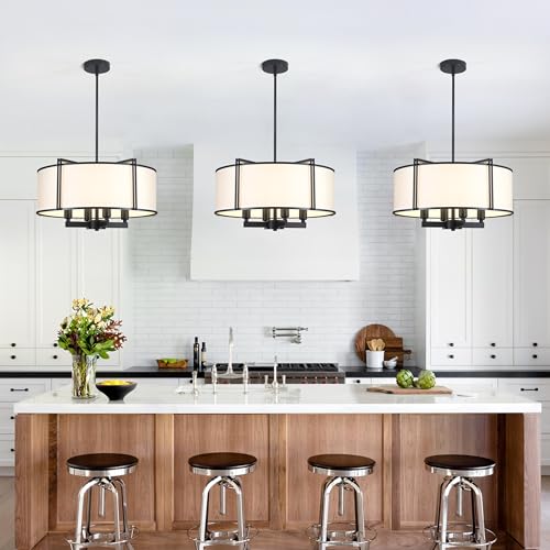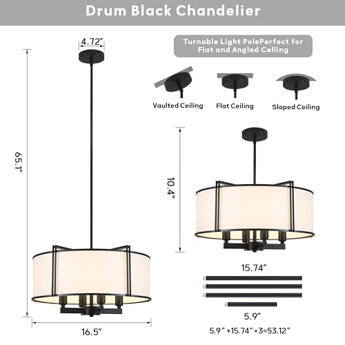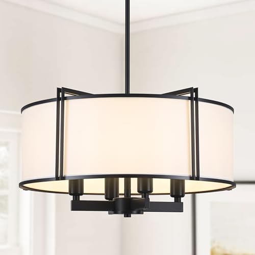 ? Drum Chandelier?The unique metal frame and white fabric cover design, retro and soft lighting effects, create an elegant and simple atmosphere. The 16.5 inch black chandelier is suitable for matching with various types of furniture. The light is large enough to illuminate your home. You can choose 2-3 lamps according to your area.