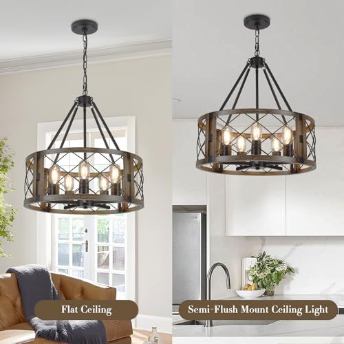 ?Easy to Install ?Brown wood texture farmhouse dining room chandelier assembly only requires hanging the hanging rod and installing the ceiling tray to the ceiling, you can adjust the chain length to your requirements to position the hang height. With different display devices, there may be slight color differences, we promise to show the pictures closest to the real thing, please be considerate