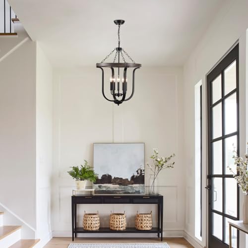 ?Vintage Birdcage-like Design?TIP: The top chain needs to stay in the same direction to maintain balance and keep the chandelier centered. Lantern chandelier with openwork design, open center, emitting unobstructed light. High quality iron matte black finish, strong surface texture, 5 candle holder light bulb sockets, enough to light up your home and become the focal point of your home.