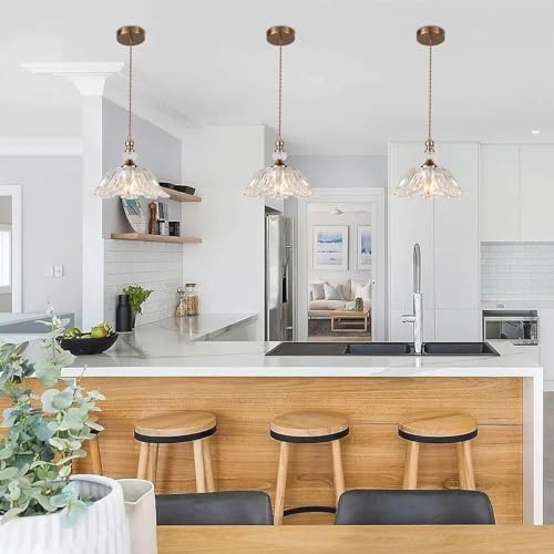 ?Classy Antique Design?Unique glass pendant lighting fixture in particular, the perfect combination of flower shape and crystal lamp beads in bronze gold creates a refined and elegant atmosphere.Thickened flower-shaped glass lampshade shines brighter and will never chip, fade or lose its luster.Durable pendant lights the center of attention when placed 2 or 3 sets of this light on your kitchen island or hallway, bedroom, sink Table, foyer, bed side and entryway.
