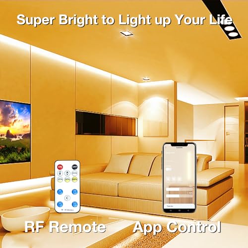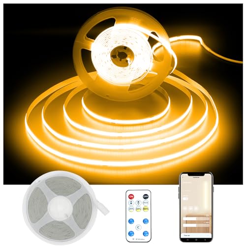 Smart Control Ways: This COB LED strip light can be controlled by 13 keys RF remote and smart app. You can adjust the brightness, dynamic speed of the strip, set the solid state mode