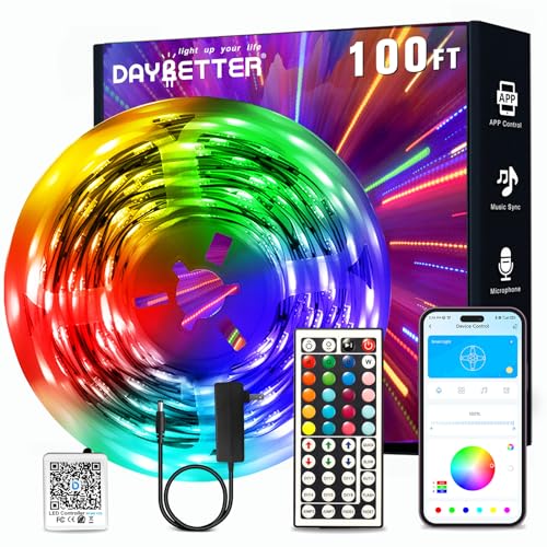 APP and IR Remote Control: DAYBETTER 100 feet led strip lights support both app and 44 keys ir remote for control, which allow you change the led lights color and modes are conveniently for bedroom, ceiling, kitchen, living room, bar and party decoration
