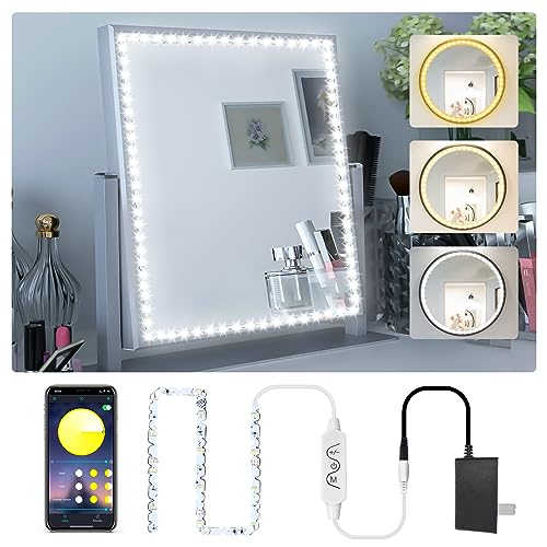 Daymeet Led Vanity Mirror Lights, 13ft Led Lights for Mirror, Dimmable Color & Multi-Color Brightness Lighting Fixture Strip Lights for Mirror, Bluetooth APP Control for Makeup Vanity Table Bathroom