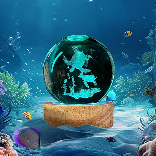 ?????Beautiful Turtle Home Decor?The inside of the crystal clear ball is engraved with exquisite and clear 3D patterns, under the illumination of soft light, it creates a warm and dreamy atmosphere, bringing a romantic artistic sense to your home. It is both a night light and a very beautiful decoration. Suitable for bedroom, living room, children's room, study, hallway or any style of space.