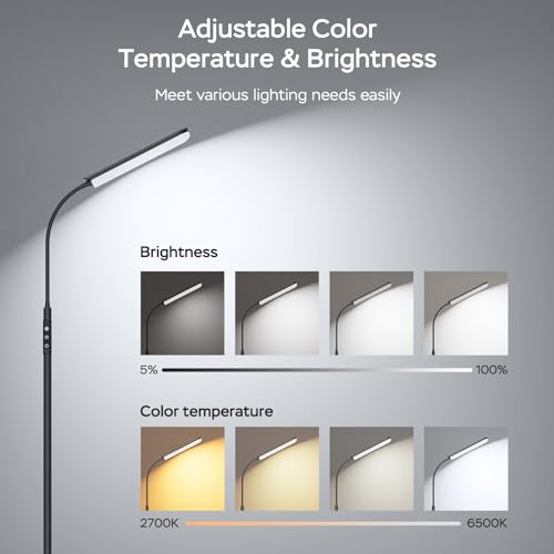 Color Temperature Adjustable & Dimmable Brightness: With a color temperature range of 2700K-6500K and stepless dimmable brightness from 5% to 100%, this floor lamp allows you to customize your ideal lighting for reading, working, playing, and more. You can also choose from 5 different scene light modes with the click of a remote.