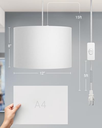 [Customizable Hanging Height] Tailor the height of your lighting fixture to your preference with our flexible 15ft plug-in cord; easily adjust the hanging height to create the perfect lighting ambiance in any space; no bending is required with the On/Off switch located 5 feet from the plug, you can easily control your lighting with ease