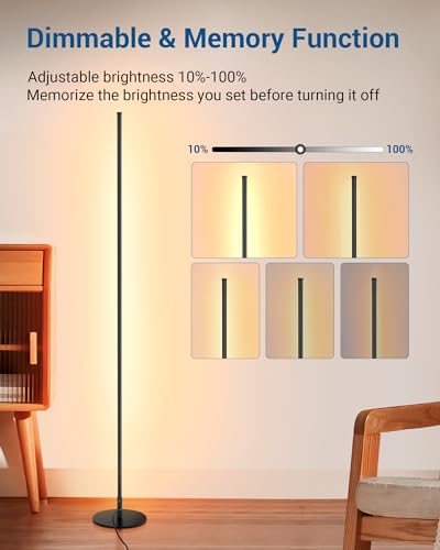 [Simple Modern Design] Thin and straight overall silver metal light pole gives the mood floor lamp a minimalist and modern look, suitable for a wide range of interior styles; 10%-100% adjustable brightness provides soft light and creates a warm and cosy atmosphere; ideal for living room, office, bedroom, reading corner, game room