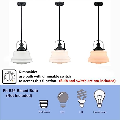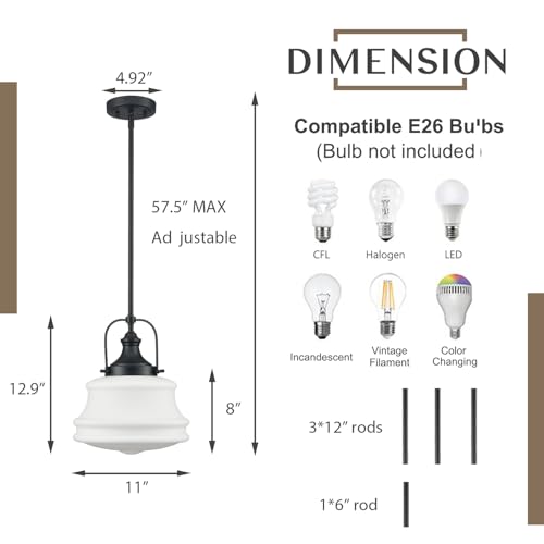 Design:This modern pendant light ceiling hanging is proud to introduce a black finish accented with milky glass shade. This schoolhouse pendant lighting is a perfect choice over your kitchen island or dining area with single or pairs
