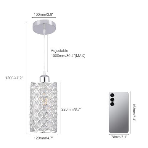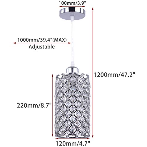 Round Shade Size: Diameter 120mm(4.7") X Height 220mm(8.7"); Total Height: adjustable from 16" to 39.4"; Ceiling Cap:3.9”;