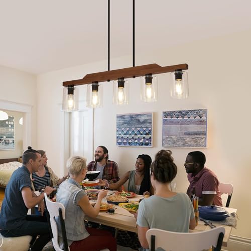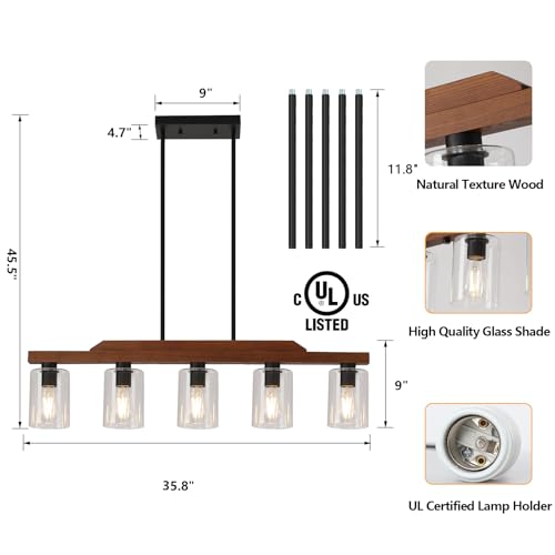 Kitchen Chandelier Widely Used:The rustic kitchen island light is perfect for hanging in the kitchen,living rooms,bedrooms,bars,offices,foyers,dining rooms,farm table,cafes,and other areas.the kitchen lighting fixtures perfect combination of vintage solid wood,rust-proof matte black metal and cylinder glass lampshade,simple yet refined,steady and elegant,which will illuminate all-round, adds vibrant vibe to any room.
