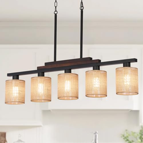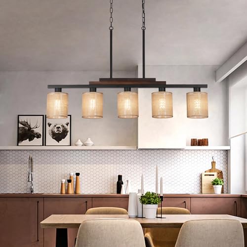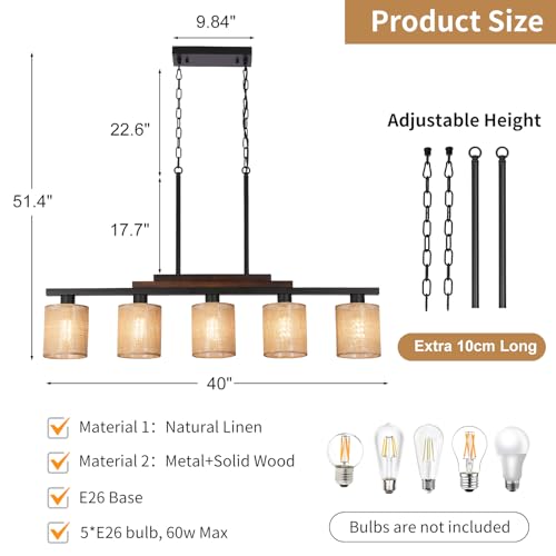 ?Size?: The kitchen table light fixtures ceiling hanging farmhouse measures W40 inches * H51.4 inches (total height), E26 * 5 lights (maximum 60-watt bulb each). Compatible with dimmable LED, energy-saving, halogen bulbs. (? Bulbs not included).