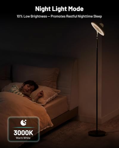 Flexible Angle Adjustment: The shade of tall floor lamp rotates 350° horizontally and 90° vertically, allowing you to direct light toward walls or the ceiling as needed. The 72.8in power cord provides ample length to reach different corners of your living room or bedroom. The 4000K, 100% brightness Reading Mode is ideal for work and study. The 3000K, 10% brightness Night Light Mode creates a cozy atmosphere, while the 1-hour timer mode helps you sleep soundly through the night.