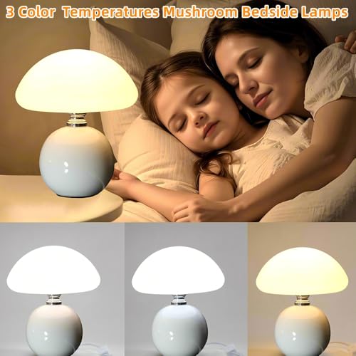 ?3 Color Temperatures:This modern table lamp offers three different types of light (3000K warm,4500K natural, 6500K cold),You can freely adjust the desk light color with a simple button switch to meet the needs of different scenarios.Whether you are reading,working or relaxing before going to bed,this mushroom desk lamp can provide perfect lighting!(energy-saving LED bulb included)