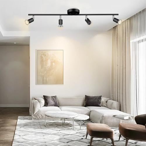Eye Caring & Convenient: The black track lights with 3000K eye-care warm light AC86-265V. You can add other color temperature GU10 bulbs and take bulbs higher than 3W (Max Watts: 40W) to these spotlights as you like. (4*3W GU10 Bulbs Included), 3000K Warm Light, 960 lumen light output, >90% CRI, which produce a more accurate color rendering of the objects around it