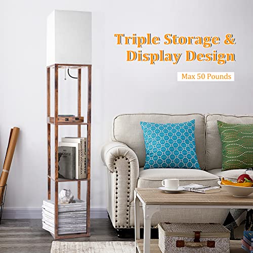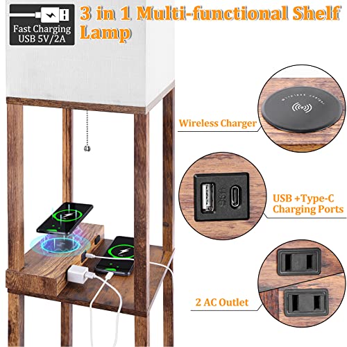 ?Tall Lamp with Real Solid Wood?: Our standing lamp with shelves has 3 shelves attached, which loads 50 pounds max. The shelf lamp is made of solid wood with stable structure, high loading and durable. You can put photo frame, plants, books, or any items on it,Perfect wireless charging floor lamps for living room, bedrooms, reading room and office. It is also very suitable as a gift for Mother's Day, Thanksgiving Day, or Christmas.