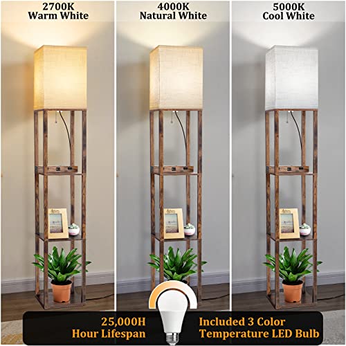 ?Smart Floor Lamp with 3 Color Temperature LED Bulb?This office floor lamp with shelf is equipped with an E26 base compatible with various bulbs.A free 8W A19 LED bulb is included.You can control the brightness of your stand up lamp with the ability to adjust color temperature(2700K, 4000K, 5000K ) by pulling the chain. When you adjust the the brightness of standing lamp for bedroom, the last mode will be saved you set, which is convenient for your life.