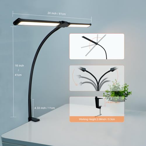 10W Dual Head Lamp: Enjoy a wide and evenly distributed illumination area with this high performing LED desk lamp. Suitable for multi-monitor workstation, home office, large desk, study, architect, computer, drawing, sewing, crafts, painting, reading, gaming, piano.