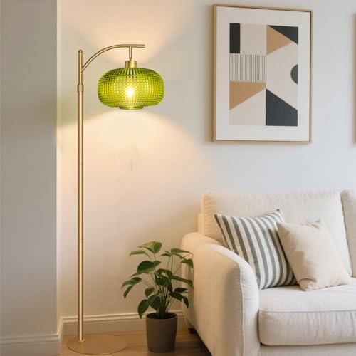 Glass Gold Floor Lamp: The mid century modern green lamp shade with beautiful delicate detail and a gorgeous exterior. This unique and elegant design will bring a comfortable atmosphere to your room