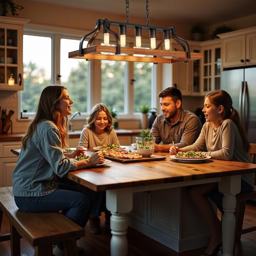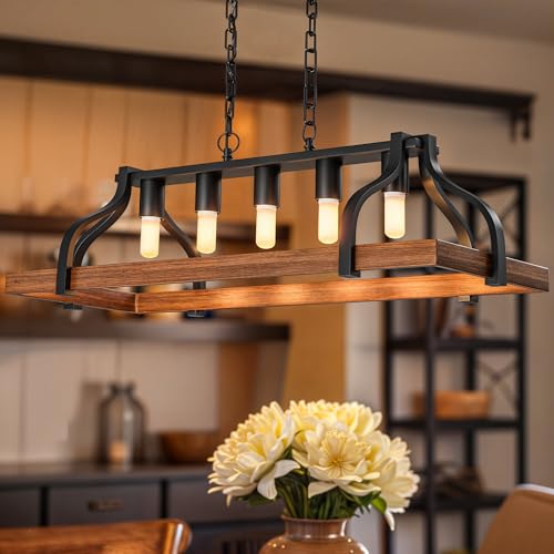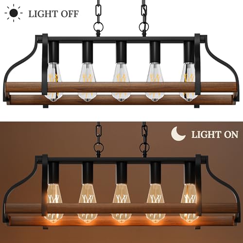 Classic Vintage Design: DWVO island light exhibits a timeless vintage design with a full metal frame and faux wood grain finish; The rustic kitchen light fixture adds a unique charm to your home, enhancing the aesthetic appeal of your kitchen, dining room