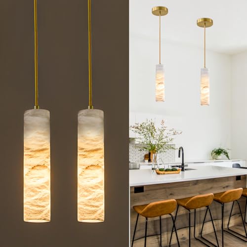 ?Height Adjustable?The kitchen island pendant light is 13.85 inches high, 2.36 inches in diameter, and is height-adjustable with a maximum length of 70.86 inches (180 cm). This alabaster chandelier height can be effortlessly customized to your preference, offers superior flexibility to fit any space, complementing various room layouts.
