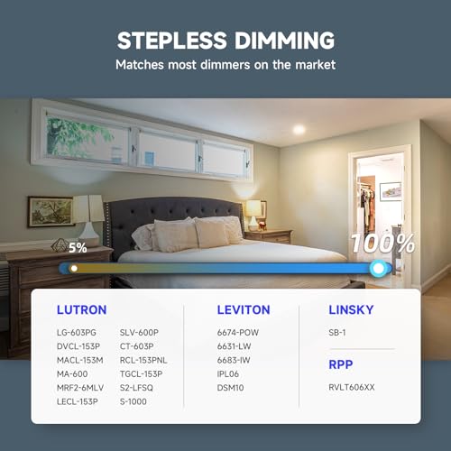SMOOTH DIMMABLE: LED 6inch Recessed Lighting support seamless and smooth dimming capabilities from 5% to 100%. Give you a smooth dimming experience without any unwanted flickering, flashing or humming noise to fit any mood or decor
