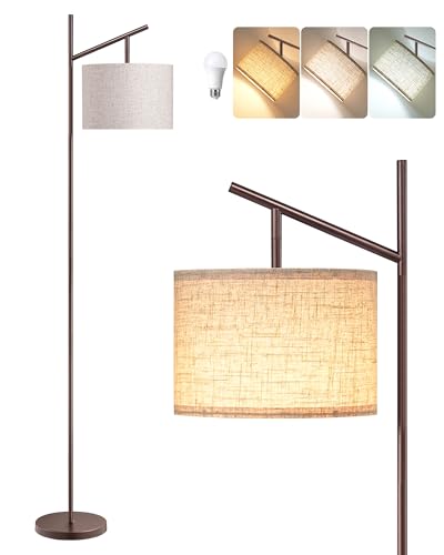 [3CCT LED Bulb Included] This beige shade modern floor lamp with an 8W A19 LED bulb, 3 adjustable color temperatures: 3000K (warm white), 4000K (neutral white), and 6500K (cool white), from warm ambient light to bright task lighting; memory function restores your last setting